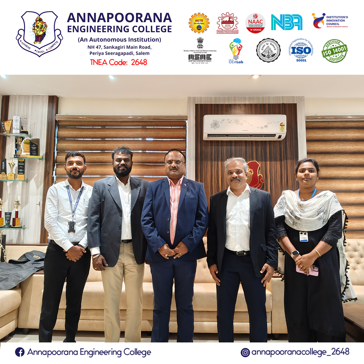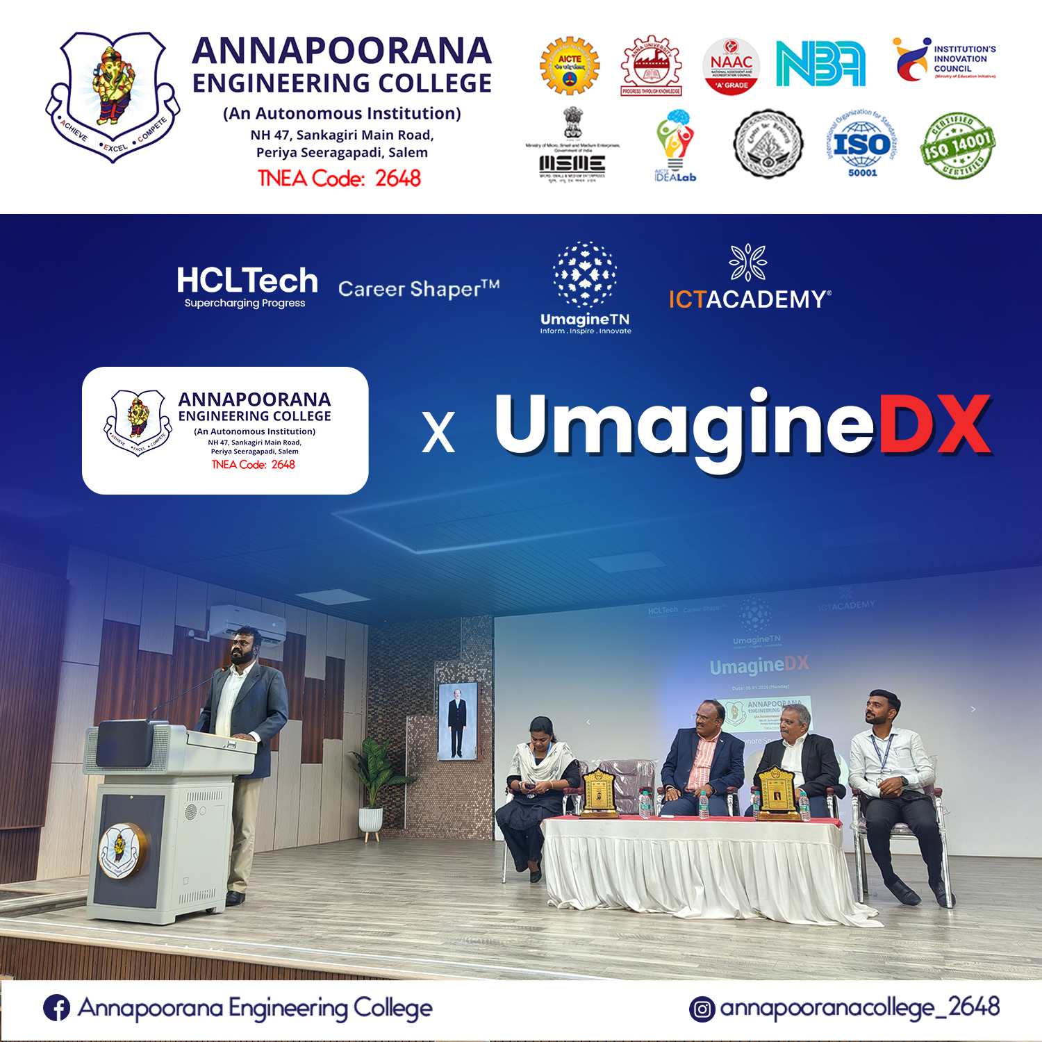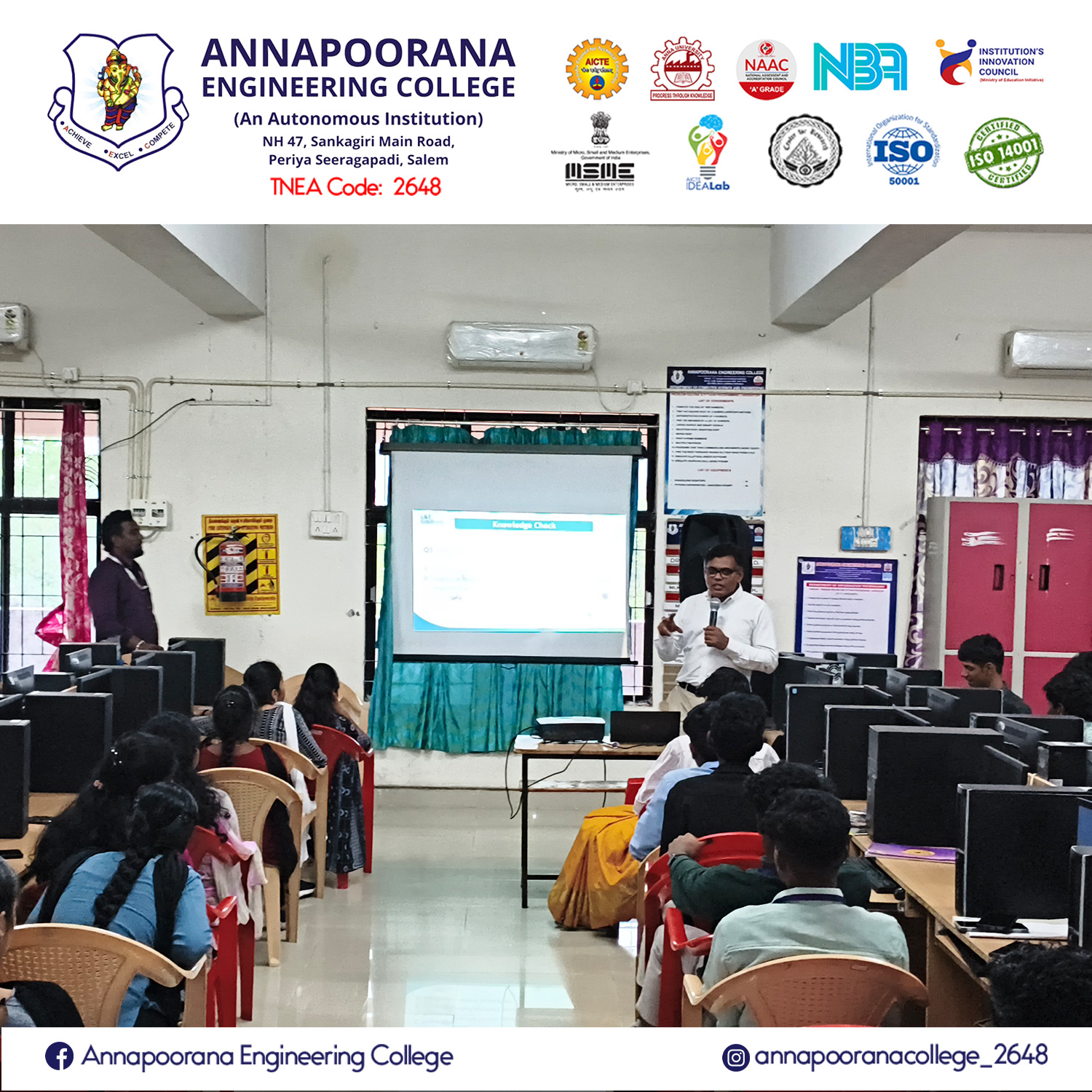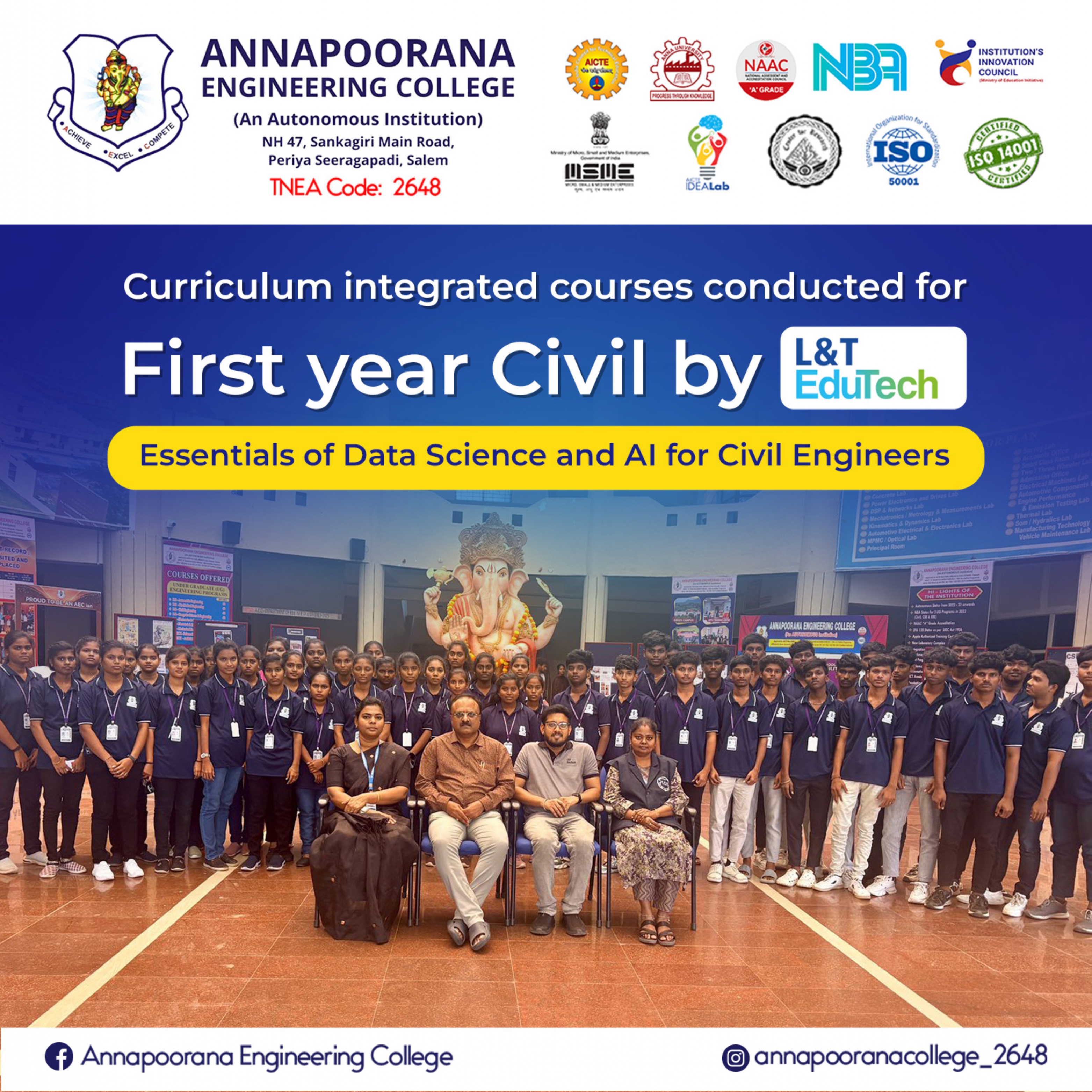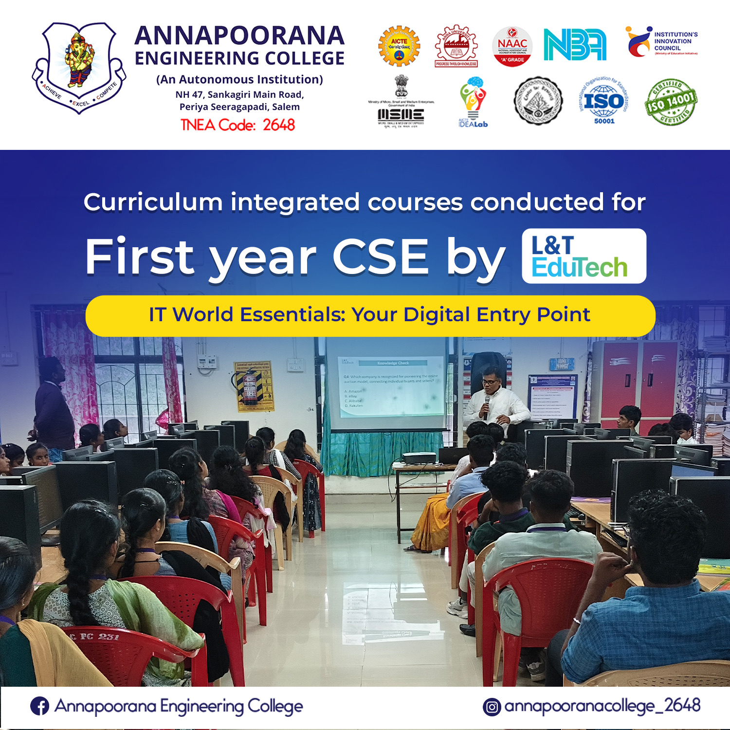 Annapoorana Engineering College (Autonomous), Salem, has established a Memorandum of Understanding (MoU) with ICT Academy to enhance industry-integrated learning and strengthen the employability of students. This collaboration serves as a platform to bridge the gap between academic knowledge and industry expectations through structured training, certification, and skill development initiatives.